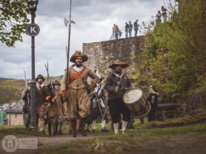 Als Trommler treibst Du mit dem dumpfen Schnarren der Trommel unsere Soldaten voran, gibst Befehle der Offiziere an die Soldaten weiter und sorgst für den Gleichschritt während des Marschs. Das Aufziehen eines Regiments auf das Schlachtfeld im Trommeltakt und dem Musketendonner, lassen uns ahnen, wie sich die Armeen des 17. Jahrhunderts angehört haben und sorgen für den richtigen “Sound of war”. Aber nicht nur Trommler sind in unseren Reihen willkommen! Die Armeen des 17. Jahrhunderts führten auch Pfeifer oder Hornisten mit, deren Aufgabe die musikalische Begleitung beim Marsch bzw. Weitergabe von Befehlen war. Jeder Jugendliche oder Erwachsene, egal welchen Geschlechts, kann Musiker in unseren Reihen werden.