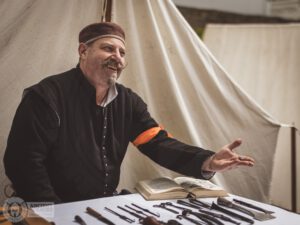 Als Hand­wer­ker, der in unse­rem Lager sein Kön­nen zeigt, darfst Du den Besu­chern Rede und Ant­wort ste­hen und ihnen erklä­ren, was genau Du machst. Ein soli­der Grund­stock an Hin­ter­grund­wis­sen zu Dei­ner Tätig­keit sind hier­bei nicht ver­kehrt. So Du noch kein Hand­werk beherrschst und ein zu Dir pas­sen­des erler­nen möch­test, hel­fen wir Dir ger­ne hier­bei. Auch bei der Anschaf­fung oder Anfer­ti­gung von Uten­si­li­en für Dein Hand­werk oder Dei­ne Beklei­dung hel­fen wir ger­ne. In unse­ren Regi­ments­werk­stät­ten kön­nen wir alles hier­für nur erdenk­li­che anfer­ti­gen, wobei Du ger­ne unter­stüt­zend mit­wir­ken darfst und so etwas über Mate­ri­al­kul­tur der frü­hen Neu­zeit lernst. Sobald Du Mit­glied in unse­ren Rei­hen wirst, erhältst Du zudem unse­re Gui­des zur Aus­rüs­tung, in wel­chen noch­mal genau erläu­tert ist, was Du alles benö­tigst. Unter dem Punkt “Publi­ka­tio­nen” im Menü Dar­stel­lung fin­dest Du mehr hier­über.