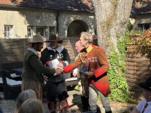 Beim diesjährigen Landesvergleichsschießen des Landesverbandes Historischer Bürger- und Landwehren in Bayern e. V., das am Samstag, dem 20.09.2025, stattfand, nahmen neun Mitglieder des Regiments teil. Wie im vergangenen Jahr fand das Schießen auf der Anlage der Privilegierten Hauptschützengesellschaft Nürnberg statt. Wie jedes Jahr wurden der Landesschützenkönig (Langwaffe), der Landespistolenkönig und der Wittelsbacherpokal (Mannschaftsschießen) sowie Einzelwertungen ausgeschossen. Auch in diesem Jahr erzielte das Regiment wieder einige Erfolge. Eine Mannschaft bestehend aus Matthias Söder, Uwe Klotz und Daniel Klotz erzielte mit 81 von 90 Punkten das beste Mannschaftsergebnis und gewann den Wittelsbacherpokal. Die beste Einzelwertung erzielte Uwe Klotz. Er wurde auch 1. Ritter des Landespistolenkönigs. Die zweitbeste Einzelwertung sowie den besten Tiefschuss (bester Einzelschuss) sicherte sich unser Musketier Sönke Schmidt. Eine tolle Leistung – VIVA SANTA MARIA!